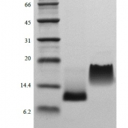 We recommend that this vial be briefly centrifuged prior to opening to bring the contents to the bottom. Reconstitute in sterile distilled water or aqueous buffer containing 0.1 % BSA to a concentration of 0.1-1.0 mg/mL. Stock solutions should be apportioned into working aliquots and stored at ≤ -20 °C. Further dilutions should be made in appropriate buffered solutions.