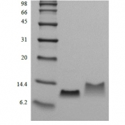 Chemokine (C-C motif) ligand 4, also known as Macrophage inflammatory protein-1β (MIP-1β) is a CC chemokine with specificity for CCR5 receptors and it is a major HIV-suppressive factor produced by CD8+ T cells. In addition, it is a monokine with inflammatory and chemokinetic properties. Recombinant CCL4 induces a dose-dependent inhibition of different strains of HIV-1, HIV-2, and simian immunodeficiency virus (SIV). Furthermore, recombinant murine CCL4 contains 69 amino acids and it shares 77 % and 86 % a.a. sequence identity with human and rat CCL4. Both human and murine MIP-1alpha and MIP-1β are active on human and murine hematopoietic cells.