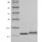 We recommend that this vial be briefly centrifuged prior to opening to bring the contents to the bottom. Reconstitute in sterile distilled water or aqueous buffer containing 0.1 % BSA to a concentration of 0.1-1.0 mg/ml. Stock solutions should be apportioned into working aliquots and stored at ≤ -20 °C. Further dilutions should be made in appropriate buffered solutions.