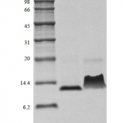 We recommend that this vial be briefly centrifuged prior to opening to bring the contents to the bottom. Reconstitute in sterile distilled water or aqueous buffer containing 0.1 % BSA to a concentration of 0.1-1.0 mg/ml. Stock solutions should be apportioned into working aliquots and stored at ≤ -20 °C. Further dilutions should be made in appropriate buffered solutions.