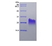 We recommend that this vial be briefly centrifuged prior to opening to bring the contents to the bottom. Reconstitute in sterile distilled water or aqueous buffer containing 0.1 % BSA to a concentration of 0.1-1.0 mg/mL. Stock solutions should be apportioned into working aliquots and stored at ≤ -20 °C. Further dilutions should be made in appropriate buffered solutions.