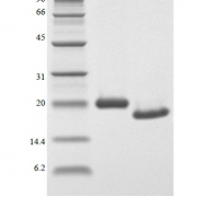 Oncostatin M (OSM) is a multifunctional cytokine that belongs to the Interleukin-6 subfamily. Among the family members, OSM is most closely related to leukemia inhibitory factor (LIF) and it in fact utilizes the LIF receptor in addition to its specific receptor in the human. A biologically active OSM receptor has been previously described that consists of a heterodimer of leukemia inhibitory factor receptor (LIFR) and gp130. OSM is synthesized by stimulated T-cells and monocytes. Furthermore, the effects of OSM on endothelial cells suggest a pro-inflammatory role for OSM and endothelial cells possess a large number of OSM receptors. Recombinant murine OSM contains 181 amino acids and has a molecular mass of 20.4 kDa. It has approximately 48 % and 72 % amino acid sequence identity with human and rat OSM.