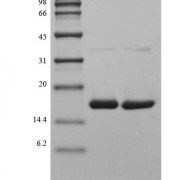 We recommend that this vial be briefly centrifuged prior to opening to bring the contents to the bottom. Reconstitute in sterile distilled water or aqueous buffer containing 0.1 % BSA to a concentration of 0.1-1.0 mg/mL. Stock solutions should be apportioned into working aliquots and stored at ≤ -20 °C. Further dilutions should be made in appropriate buffered solutions.