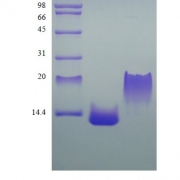 We recommend that this vial be briefly centrifuged prior to opening to bring the contents to the bottom. Reconstitute in sterile distilled water or aqueous buffer containing 0.1 % BSA to a concentration of 0.1-1.0 mg/ml. Stock solutions should be apportioned into working aliquots and stored at ≤ -20 °C. Further dilutions should be made in appropriate buffered solutions.