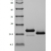 Approximately 16.3 kDa, a single non-glycosylated polypeptide chain containing 144 amino acids.