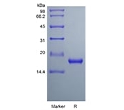 Approximately 17.4 kDa, a single non-glycosylated polypeptide chain containing 156 amino acids.