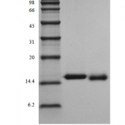 Approximately 14.0 kDa, a single non-glycosylated polypeptide chain containing 124 amino acids.