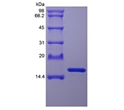 Approximately 15.6 kDa, a single non-glycosylated polypeptide chain containing 136 amino acids.