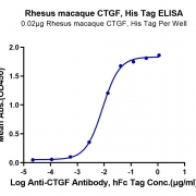 Immobilized Rhesus macaque CTGF, His Tag at 0.2ug/ml (100ul/well) on the plate. Dose response curve for Anti-CTGF Antibody, hFc Tag with the EC50 of 8.7ng/ml determined by ELISA. See testing image for detail.