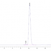 The protein has a predicted MW of 69.09 kDa. Due to glycosylation, the protein migrates to 75-105 kDa based on Tris-Bis PAGE result.