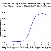 Immobilized Rhesus macaque ITGAV&ITGB6, His Tag at 5ug/ml (100ul/well) on the plate. Dose response curve for Anti-alpha-V Antibody, hFc Tag with the EC50 of 32.4ng/ml determined by ELISA. See testing image for detail.