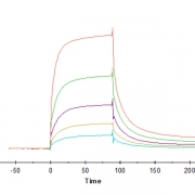 The affinity constant of 215.30 nM as determined in SPR assay (Biacore T200). See testing image for detail.