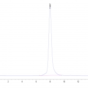 The protein has a predicted MW of 76.14 kDa. Due to glycosylation, the protein migrates to 100-120 kDa based on Tris-Bis PAGE result.
