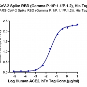 Immobilized SARS-CoV-2 Spike RBD (Gamma P.1/P.1.1/P.1.2) , His Tag at 0.5ug/ml (100ul/well) on the plate. Dose response curve for Human ACE2, hFc Tag with the EC50 of 27.7ng/ml determined by ELISA. See testing image for detail.