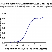 Immobilized SARS-COV-2 Spike RBD (Omicron BA.2.38) , His Tag at 0.5ug/ml (100ul/Well) on the plate. Dose response curve for Human ACE2, hFc Tag with the EC50 of 4.9ng/ml determined by ELISA. See testing image for detail.