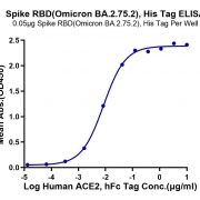 Immobilized Spike RBD (Omicron BA.2.75.2) , His Tag at 0.5ug/ml (100ul/well) on the plate. Dose response curve for Human ACE2, hFc Tag with the EC50 of 8.4ng/ml determined by ELISA. See testing image for detail.