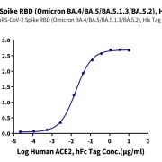 Immobilized SARS-CoV-2 Spike RBD (Omicron BA.4/BA.5/BA.5.1.3/BA.5.2) , His Tag at 1ug/ml (100ul/Well) on the plate. Dose response curve for Human ACE2, hFc Tag with the EC50 of 17.3ng/ml determined by ELISA. See testing image for detail.