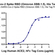 Immobilized SARS-Cov-2 Spike RBD (Omicron XBB.1.5) , His Tag at 0.5ug/ml (100ul/Well) on the plate. Dose response curve for Human ACE2, hFc Tag with the EC50 of 19.1ng/ml determined by ELISA. See testing image for detail.