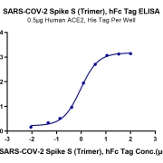 Immobilized Human ACE2 at 5ug/ml (100ul/Well). Dose response curve for SARS-COV-2 Spike S (Trimer) , hFc Tag with the EC50 of 0.9ug/ml determined by ELISA. See testing image for detail.