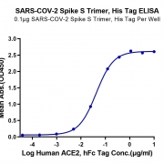 Immobilized SARS-COV-2 Spike S Trimer, His Tag at 1ug/ml (100ul/Well). Dose response curve for Human ACE2, hFc Tag with the EC50 of 42.2ng/ml determined by ELISA. See testing image for detail.