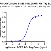 Immobilized SARS-COV-2 Spike S1 (B.1.640.2/IHU) , His Tag at 2ug/ml (100ul/Well) on the plate. Dose response curve for Human ACE2, hFc Tag with the EC50 of 23.0ng/ml determined by ELISA. See testing image for detail.