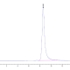 The protein has a predicted MW of 77.9 kDa. Due to glycosylation, the protein migrates to 110-120 kDa based on Tris-Bis PAGE result.