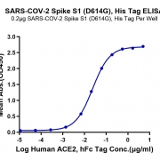 Immobilized SARS-CoV-2 S1 (D614G) , His Tag at 2ug/ml (100ul/Well) on plate.Dose response curve for Human ACE2, hFc Tag with the EC50 of 23.7ng/ml determined by ELISA. See testing image for detail.