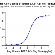 Immobilized SARS-CoV-2 Spike S1 (Delta B.1.617.2) , His Tag at 0.5ug/ml (100ul/Well) on the plate. Dose response curve for Human ACE2, hFc Tag with the EC50 of 21.8ng/ml determined by ELISA. See testing image for detail.