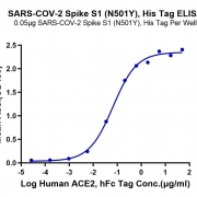 Immobilized SARS-COV-2 Spike S1 (N501Y) , His Tag at 0.5ug/ml (100ul/Well) on the plate. Dose response curve for Human ACE2, hFc Tag with the EC50 of 66.2ng/ml determined by ELISA. See testing image for detail.