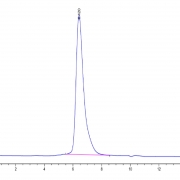 The protein has a predicted MW of 35 kDa. Due to glycosylation, the protein migrates to 55-70 kDa based on Tris-Bis PAGE result.