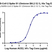 Immobilized SARS-CoV-2 Spike S1 (Omicron BA.2.12.1) , His Tag at 2ug/ml (100ul/well) on the plate. Dose response curve for Human ACE2, hFc Tag with the EC50 of 30.1ng/ml determined by ELISA. See testing image for detail.