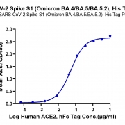 Immobilized SARS-CoV-2 Spike S1 (Omicron BA.4/BA.5/BA.5.2) , His Tag at 2ug/ml (100ul/Well) on the plate. Dose response curve for Human ACE2, hFc Tag with the EC50 of 53.4ng/ml determined by ELISA. See testing image for detail.
