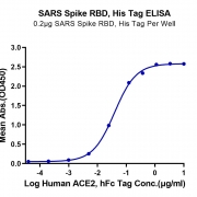 Immobilized SARS Spike RBD, His Tag at 2ug/ml (100ul/well) on the plate. Dose response curve for Human ACE2, hFc Tag with the EC50 of 39.0ng/ml determined by ELISA. See testing image for detail.