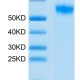 The protein has a predicted MW of 61.8 kDa. Due to glycosylation, the protein migrates to 75-82 kDa based on Tris-Bis PAGE result.
