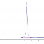 The protein has a predicted MW of 49.5 kDa. Due to glycosylation, the protein migrates to 70-80 kDa based on Tris-Bis PAGE result.