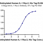 Immobilized Anti-IL-1 Rrp-2 Antibody, hFc Tag at 0.5ug/ml (100ul/Well) on the plate. Dose response curve for Biotinylated Human IL-1 Rrp2, His Tag with the EC50 of 46.5ng/ml determined by ELISA. See testing image for detail.