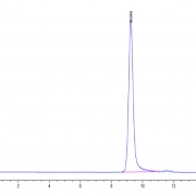 The protein has a predicted MW of 50.30 kDa. Due to glycosylation, the protein migrates to 53-63 kDa based on Tris-Bis PAGE result.