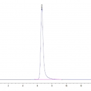 The protein has a predicted MW of 50.3 kDa. Due to glycosylation, the protein migrates to 51-60 kDa based on Tris-Bis PAGE result.