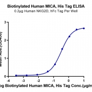 Immobilized Human NKG2D, hFc Tag at 2ug/ml (100ul/well) on the plate. Dose response curve for Biotinylated Human MICA, His Tag with the EC50 of 0.32ug/ml determined by ELISA (QC Test). See testing image for detail.