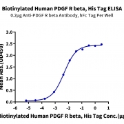 Immobilized Anti-PDGF R beta Antibody, hFc Tag at 2ug/ml (100ul/well) on the plate. Dose response curve for Biotinylated Human PDGF R beta, His Tag with the EC50 of 4.6ng/ml determined by ELISA. See testing image for detail.