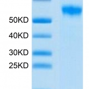 The protein has a predicted MW of 40.7 kDa. Due to glycosylation, the protein migrates to 50-60 kDa based on Tris-Bis PAGE result.