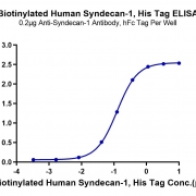 Immobilized Anti-Syndecan-1 Antibody at 2ug/ml (100ul/well) on the plate. Dose response curve for Biotinylated Human Syndecan-1, His Tag with the EC50 of 0.12ug/ml determined by ELISA. See testing image for detail.