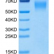 The protein has a predicted MW of 31.19 kDa. Due to glycosylation, the protein migrates to 55-70 kDa based on Tris-Bis PAGE result.