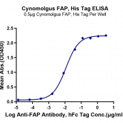 Immobilized Cynomolgus FAP at 5ug/ml (100ul/well) on the plate. Dose response curve for Anti-FAP Antibody, hFc Tag with the EC50 of 11.5ng/ml determined by ELISA (QC Test). See testing image for detail.