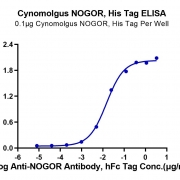 Immobilized Cynomolgus NOGOR, His Tag at 1ug/ml (100ul/Well) on the plate. Dose response curve for Anti-NOGOR Antibody, hFc Tag with the EC50 of 14.8ng/ml determined by ELISA. See testing image for detail.