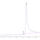 The protein has a predicted MW of 46.34 kDa. Due to glycosylation, the protein migrates to 60-73 kDa based on Tris-Bis PAGE result.