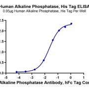 Immobilized Human Alkaline Phosphatase, His Tag at 0.5ug/ml (100ul/Well) on the plate. Dose response curve for Anti-Alkaline Phosphatase Antibody, hFc Tag with the EC50 of 23.0ng/ml determined by ELISA. See testing image for detail.