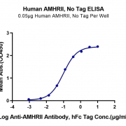 Immobilized Human AMHRII at 0.5ug/ml (100ul/Well) on the plate. Dose response curve for Anti-AMHRII Antibody, hFc Tag with the EC50 of 98.9ng/ml determined by ELISA. See testing image for detail.