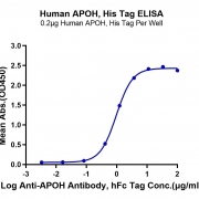 Immobilized Human APOH, His Tag at 2ug/ml (100ul/Well) on the plate. Dose response curve for Anti-APOH Antibody, hFc Tag with the EC50 of 0.97ug/ml determined by ELISA. See testing image for detail.