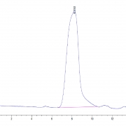 The protein has a predicted MW of 24.5 kDa. Due to glycosylation, the protein migrates to 75-120 kDa based on Tris-Bis PAGE result.